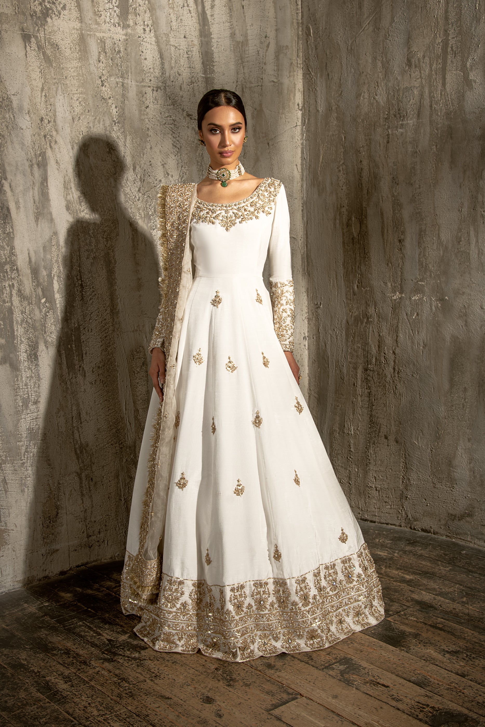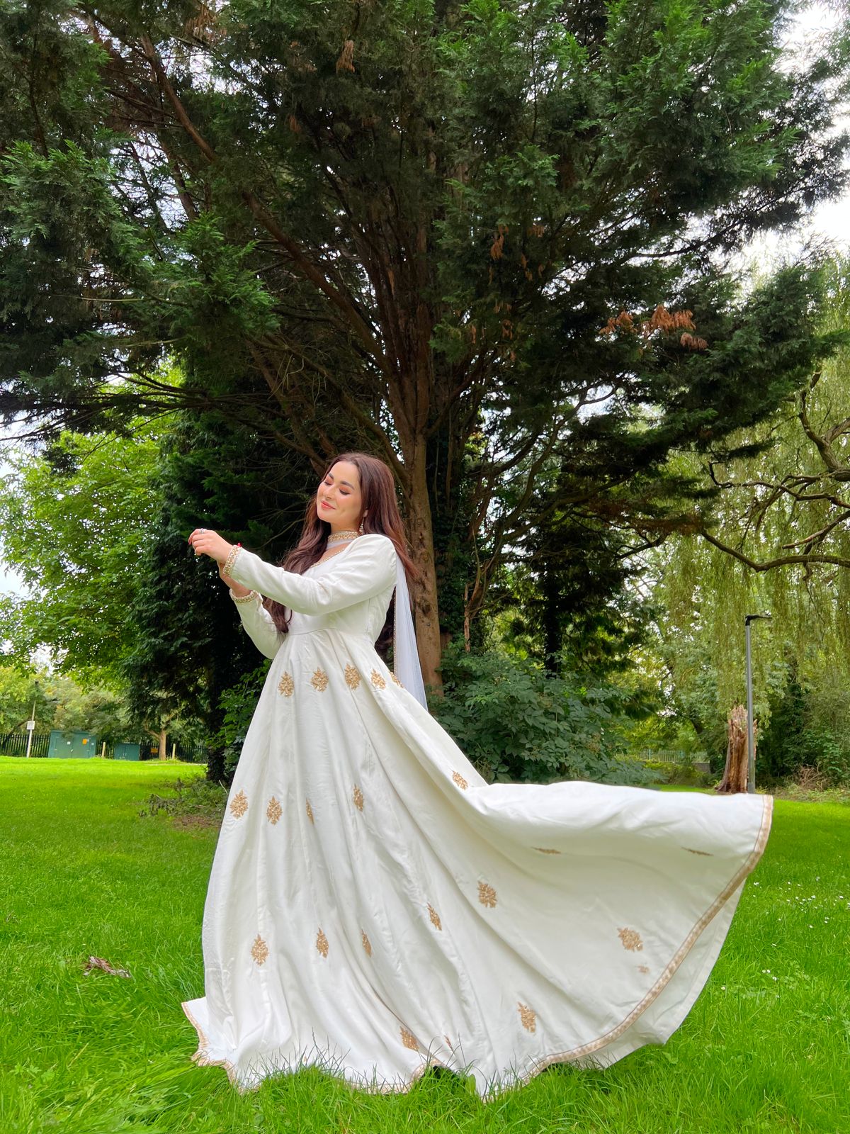 Dressed in a custom made white anarkali